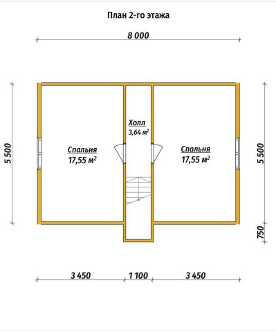 - Высота 1 этажа = 2,7 м, 2 этажа = 2,5 м;