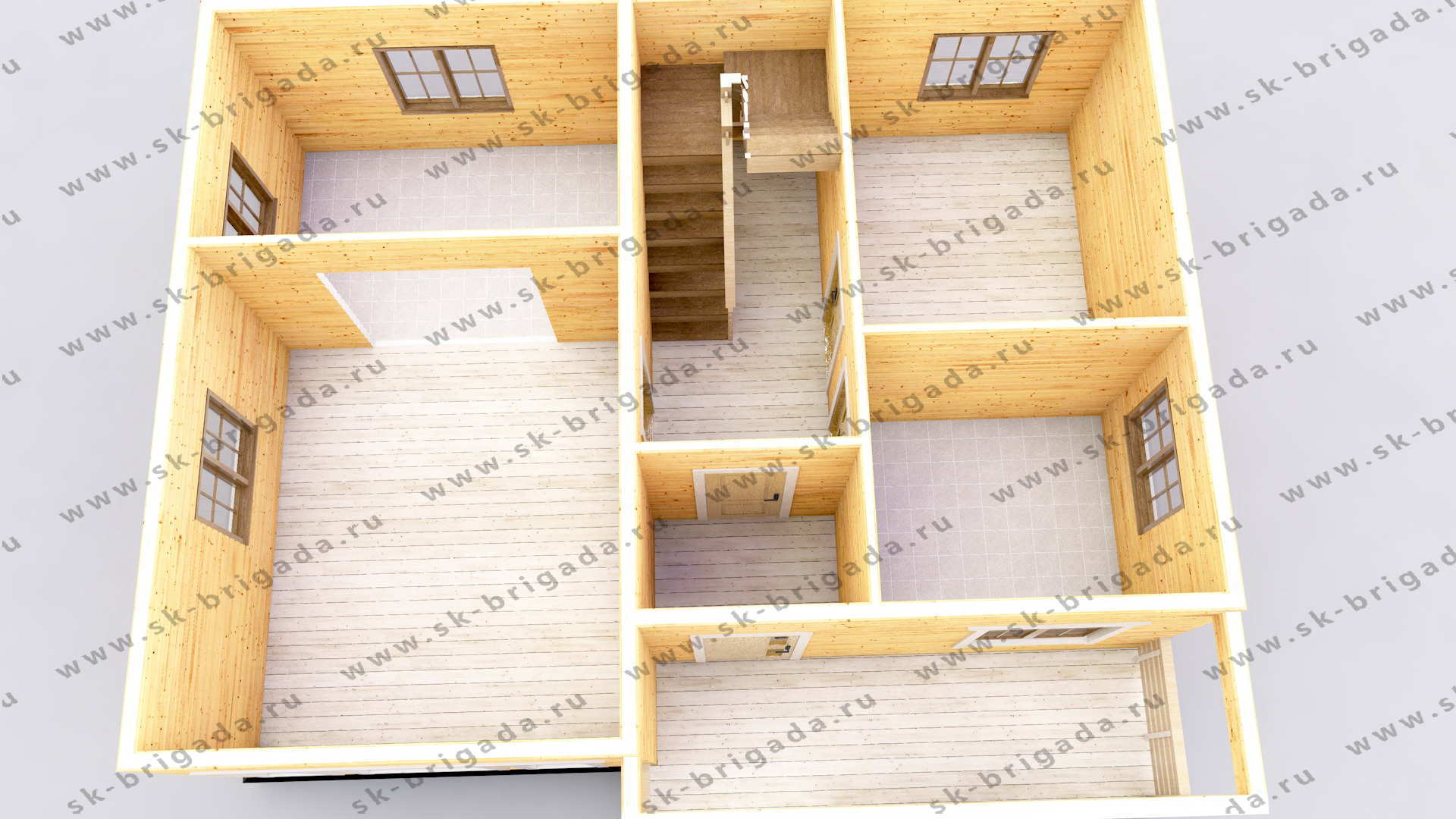 - Пол на террасе/крыльце (при наличии) – строганная доска 45х140 мм камерной сушки. Подшив стен и потолка на террасах – имитация бруса камерной сушки, сорт АВ.